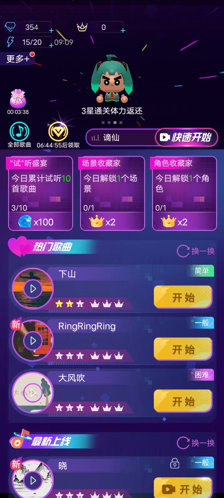 节奏光环是一款动感十足而又充满挑战的音乐游戏,游戏画面简洁明快,蓝紫色调的组合,十分梦幻,配以精心设计的音乐和节奏,营造出一个欢乐有趣的游戏体验。在游戏中,有很多的歌曲可供玩家选择,玩法也比较简单,需要跟随音乐的节拍在不同关卡中去触碰不断出现的音符,正确的节奏以及触碰才能增加关卡的分数,因此,会比较注重对玩家的反应速度和精确度的要求,挑战性较高。
