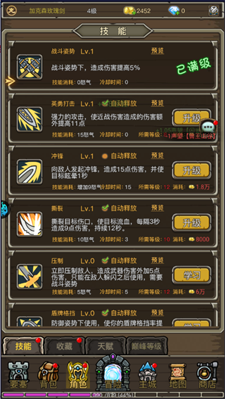 5、点击角色可以升级技能等级来提升自己的战力;