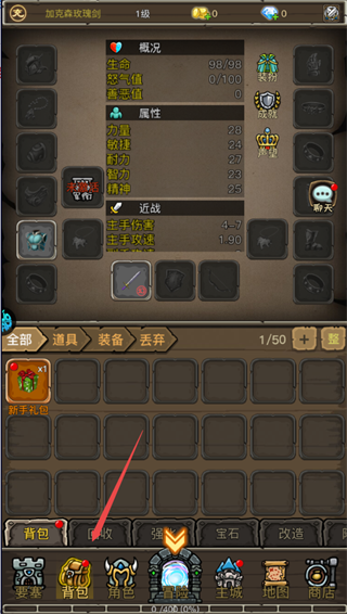 3、进入游戏,点击背包穿戴装备;