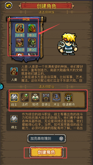 2、创建角色,选择种族,选择职业,输入角色名字;