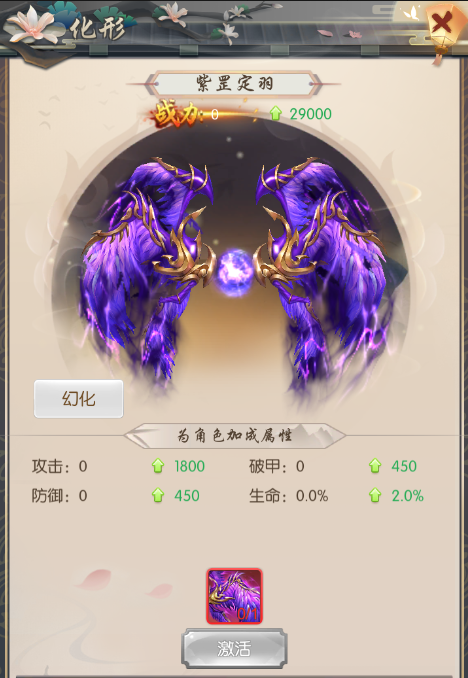 3、翅膀也可用过使用不同级别的羽翼精华获得更多的属性加成;