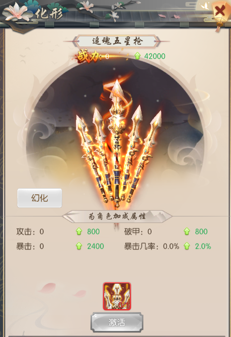 3、神兵也可用过使用不同级别的器灵获得更多的属性加成;