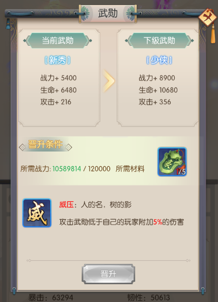 1、武勋可通过提升战力以及消耗晋升道具来提升;