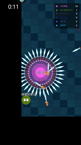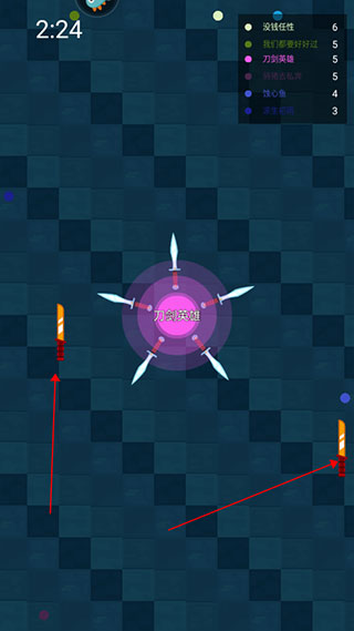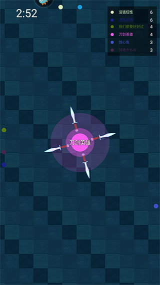 刀剑英雄大作战是一款以飞刀为主题的多人竞技大逃杀小游戏,游戏在玩法上与球球大作战有点类似,玩家在游戏中需要通过控制移动画面中的小球去寻找各种剑和刀来强化自己,在此期间你还需要注意躲避强大对手的追杀,当自身足够强大的时候就可以在场上找寻一些相对较弱的小球展开追杀,击败其他玩家后可以吸收他们的刀剑作为自己的武器继续战斗,这样不仅仅能提高你的胜率还能够提升自己在排行榜上的排名。并且游戏过程中玩家可以随时随刻的切换刀剑的模式或攻击或防御,通过切换模式来达到刀剑的最大威力。感兴趣的小伙伴们欢迎在本站下载体验。