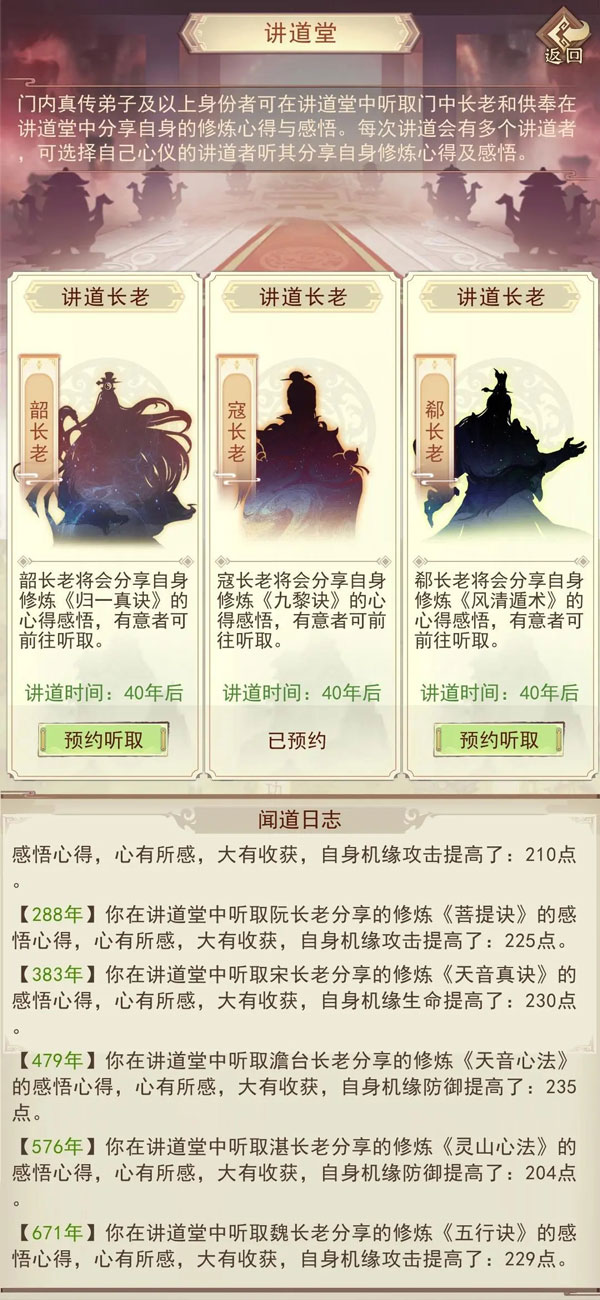 元婴并升为真传弟子后开放讲道堂,可以每天获得一次属性