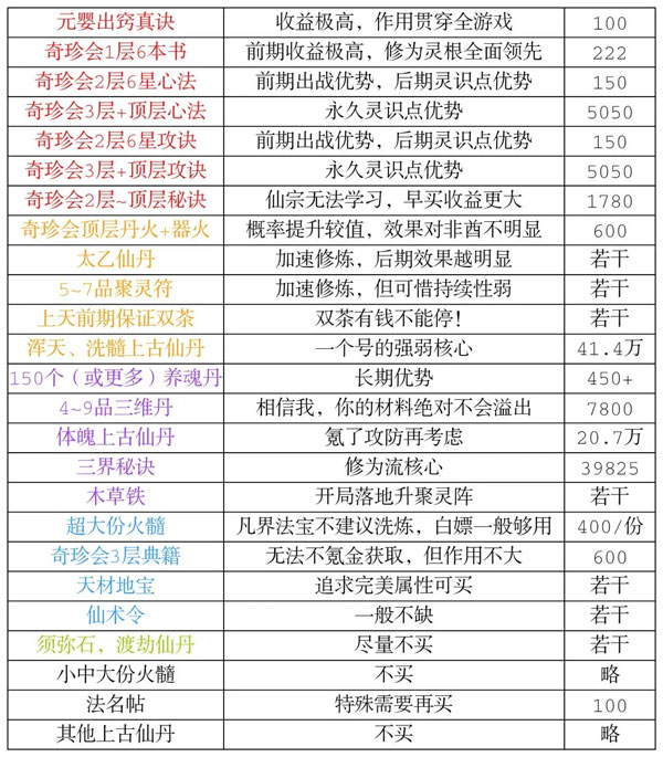 仙书坊一层前期仅购买修为书,仙书坊功法灵石充足再买。