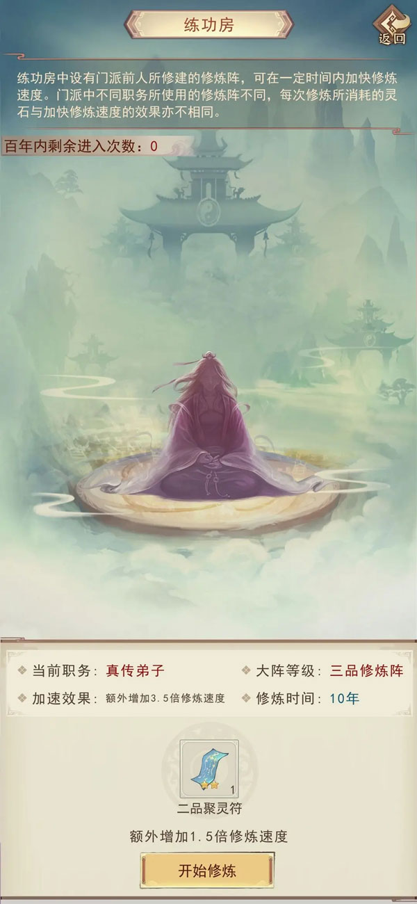 练气3开放功能:内修,消耗修为开启自动修炼。