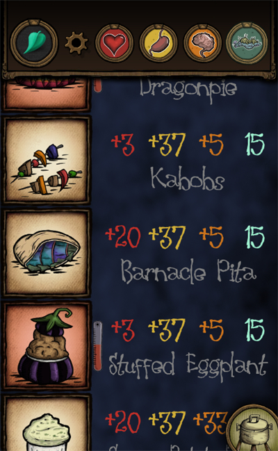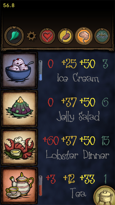 饥荒烹饪模拟器(Crockbook for Don)是一款根据经典游戏《饥荒》开发的全新烹饪模拟器,里面包含了饥荒游戏中所有的食材和配方,界面简洁,功能直观,每种不同的食物都有自己的特色,用户可以模拟游戏中所有的烹饪配方和食物效果,帮助玩家更好地掌握烹饪技能,提升游戏体验。另外,饥荒烹饪模拟器可以展示每种食品的属性效果,包括恢复生命值、增加饱腹度、降低精神值等等,并会根据健康、饥饿和原因进行排序,现在包括了“饥荒:大国”的内容,包括新的食谱和食物温度,绝对是饥荒的完美伴侣。总之,饥荒烹饪模拟器是一款实用、便捷的饥荒辅助工具,帮助玩家更好地掌握游戏中的烹饪系统和技能,提高游戏水平和体验。