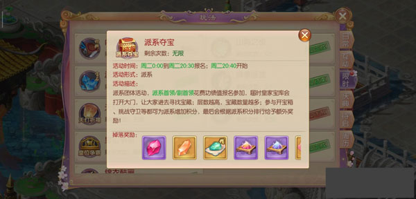 进入夺宝活动的途径有两种:从玩法中找到限时玩法,就可以看到派系夺宝的活动入口;从社交派系中进入派系活动就可以找到夺宝入口。夺宝是限时的活动,只有每周的周二才会开启。进行夺宝活动的时间虽然是固定的,但是对于玩家来说已经足够了。