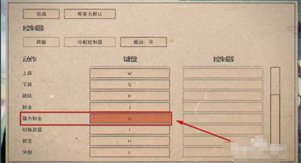 2、在设置里将强力射击调到自己习惯的键位;