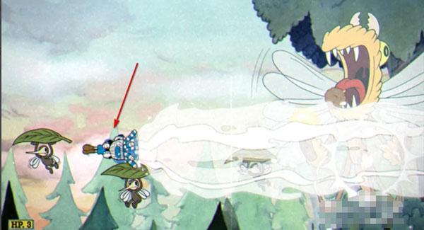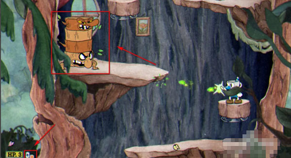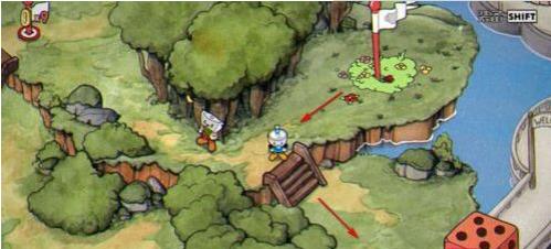 4、接着,在这里和茶杯头老爷爷对话,靠近它按下A键(跳跃键);