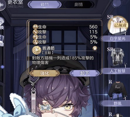 3、ssr和sr一般都会带有一部分的角色剧情,只要拥有一件就能开有关的剧情了。