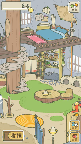 然后我们点击右下角的“房子”返回房间里,在房间里点击左下角的“收拾”按钮,开始为青蛙准备旅行的行李。