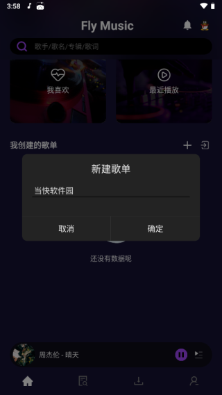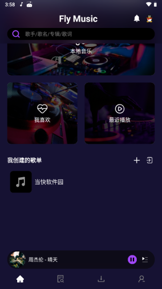 FlyMusic是一款支持歌曲播放、下载的音乐播放器,软件界面简洁,含4000万正版曲库,新歌全网首发,覆盖华语海外、内地港台,无限畅听,可以满足用户的听歌需求,并根据用户的日常听歌爱好定向推荐歌单,为用户搜罗符合喜好的优质歌曲,告别音乐荒。同时支持用户自由导入或是导出歌单,随时随地,想听就听!