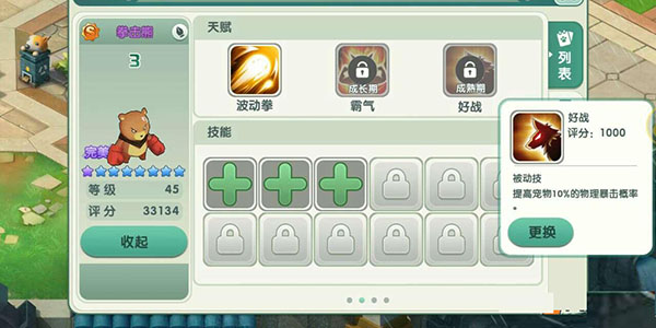 蘑菇搭配技能应该为强身、魔法连击、魔法连锁、跑的快、厚皮、厚脂、会心、智慧,这几个应该就够了。猫和熊技能搭配利爪、物理连击、连攻、跑的快、厚皮、厚脂、强身这几个。我觉得物理系的猫和熊都不错,大家喜欢熊大概是因为波动拳猛?还是熊初始就是紫星的,不浪费骨头?