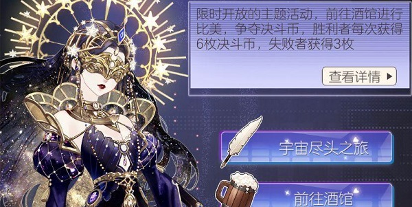 最后要说明的就是抽取或充能的部分,在宇宙尽头活动内进行限时抽取,或者充能兑换,可以收集包括星海指引者在内的四套服装。充能也可以用于,在获取主题舞伴时,选择一个获取后,可以活动结束后在星唤的商城处用宝石充能获取其他玩家想要的主题舞伴。
