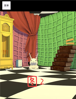 图4,大书的右侧靠近绿色柜子那边有一只兔子,最后一只兔子就是打开粉红色的的门。