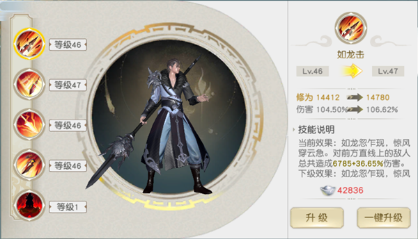 在战斗中,如果每个技能依次释放,技能真空期仅有数秒,因此不会出现依靠某个技能输出的情况,所以在主动技能的升级上,通常不需要考虑优先级,选择一键升级即可。