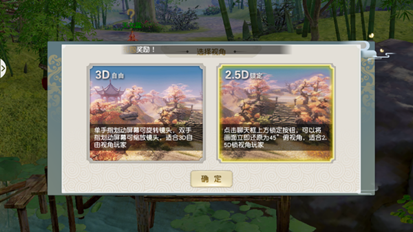 剧情到轻功后有选择视角,一个是3D自由视角,还有一个是锁定视角。