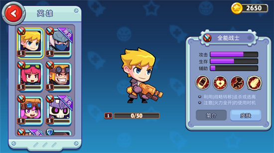 操作方面,游戏采用自动射击加上灵活走位和释放大招的方式,简单又刺激。5分钟一局的设计挺适合碎片时间玩,随时都能开一局,不会太耽误事。不过不知道实际操作手感怎么样,感觉画面风格还挺卡通的,应该能吸引不少喜欢这类游戏的玩家。