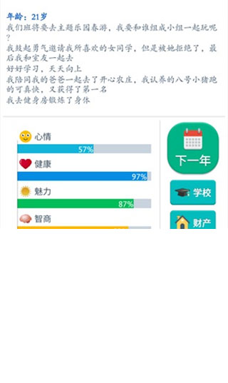 1、一款轻度模拟人生的休闲游戏,从婴儿到死亡的全部过程,你的选择将决定你的未来;