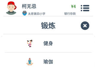3、然后锻炼里面的健身和瑜伽都可以增加健康值,这个要坚持,每年都要进行健身和瑜伽,如果钱不够,可以多健身,瑜伽可以稍微少一些。