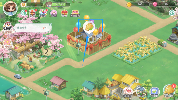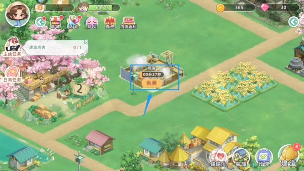 3、点击主线任务,完成用于获得奖励帮助快速升级,获取金币,如:建造鸡舍