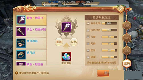 注意!装备重铸属性是随机获取 对于当前装备属性很高的情况下 不建议重铸装备 有可能会降低属性哦!