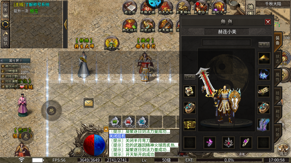 5、元神尊者:此处可将元神进行升级,二合一免费合成,属性非常强大,元神尊者边上副本内必爆一个初级法宝!
