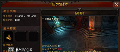 想进入《全民奇迹》的金币副本,玩家必须根据主线任务,将角色升到1转29级后,才能开启此副本。