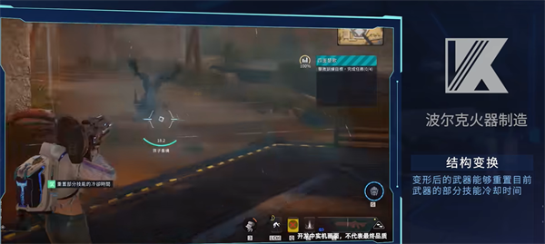 波尔克火器制造在感应动力步枪基础上融入枪体实时打印技术,因此武器带有变形效果,并且在武器变形后能刷新使用者当前所持武器部分技能的冷却时间