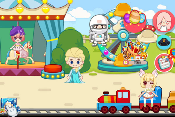 场景内分散着多种职业的NPC,宝宝也可以自己装扮喜欢的角色,让孩子们在游戏的过程中体验不同的角色扮演,提升他们的社交能力。