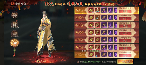 18元直购,连续7日稳定领取奖励,金锭、道具、提战应有尽有,有想提战但又不想花费大价钱的玩家可以考虑
