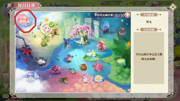 看!就戳这个全部刷新,每日有两次免费刷新订单的机会,其余的机会需要拿神叶刷新。(表肉痛,神叶以后还会送很多。)