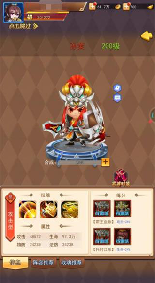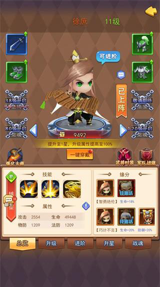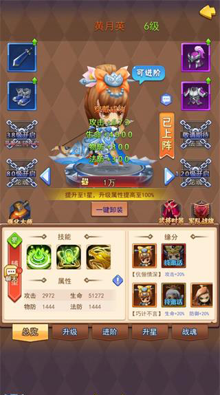 1、经典三国历史场景一一在现,知名三国武将任你培养,觉醒武将技能,为你效力。