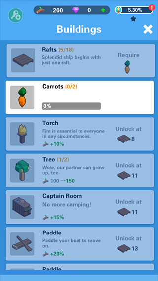 海上建造模拟是一款模拟经营养成类手游,也叫做ldle arks、海上方舟、造个方舟,游戏整体采用了2D卡通像素打造,能给玩家们带来一种清新脱俗的游戏体验感。游戏中玩家将化身为这名幸存者,通过不断地收集木材,漂流瓶,百宝箱等资源,来建造一个美丽的世界,并通过拯救其他幸存者,创造方舟,重建城市,探索未知的文明等在这个洪水泛滥的世界体验海上漂流的生活。期间你会遭遇各种各样的危险,如恶劣天气,巨型章鱼、大型鲸鱼、狂风暴雨,闪电暴晒等等,不同环境会影响玩家发展,如何摆脱这些个困难条件,就需要玩家认真探索未知领域,在不断收集和建造中,创造出自己的诺亚方舟。
