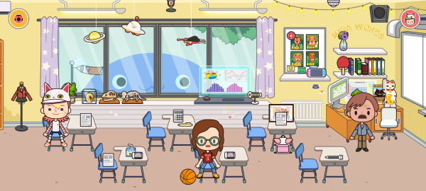 游戏里有很多有趣的玩法,比如在教室里学习新知识,在实验室做化学实验,在音乐教室创作歌曲,还可以组建自己的足球或篮球队。最让我觉得酷的是,游戏里有麦克风可以改变声音,感觉像真的在扮演不同角色一样。另外,游戏里还有隐藏的秘密等待发现,玩法无限,可以尽情发挥创意。