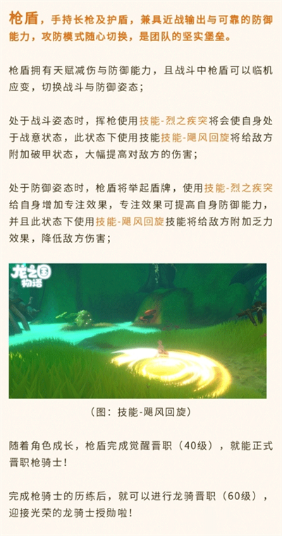 4、处于防御姿态时,枪盾将举起盾牌,使用技能-烈之疾突给自身增加专注效果,专注效果可提高自身防御能力,并且此状态下使用技能-飓风回旋技能将给敌方附加乏力效果,降低敌方伤害。