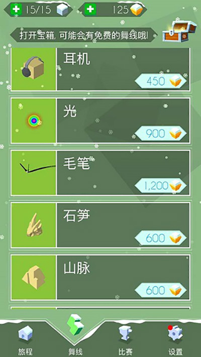 另外,游戏中用不同的舞线闯关,也就是你控制前进的道具,体验效果也是不一样,比如“光”(帘子还没收集到足够的钻石来兑换,所以暂时还没啦),每一次触屏前进,就如同是用自己的光开拓并照亮未来之路,而这条未来之路,充满着未知,也为游戏平添了几分挑战性和刺激性。