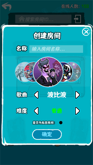 5、自己创建房间的话可以设置房名、歌曲以及难度;