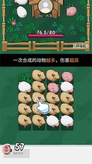 拱呀拱游戏是由睡神飞工作室最新推出的一款益智手游,在游戏中,玩家需要通过合成猪、牛、羊、大象、斑马等动物大军,去“拱”对方的“墙脚”。这里的“墙脚”代表着对方的游戏阵地,而“拱墙脚”则是一种独特的攻击方式,玩家需要巧妙地利用自己合成的动物大军,与对手进行策略性的对抗,最终目标是带走对方的动物,赢得游戏的胜利。拱呀拱游戏充满了策略性对抗,你需要根据对手的布局和动物种类,灵活地调整自己的合成策略和攻击方式。同时,还需要时刻关注自己的“墙脚”,防止被对手“拱”走自己的动物。看起来是不是很有趣,快来下载游玩吧!