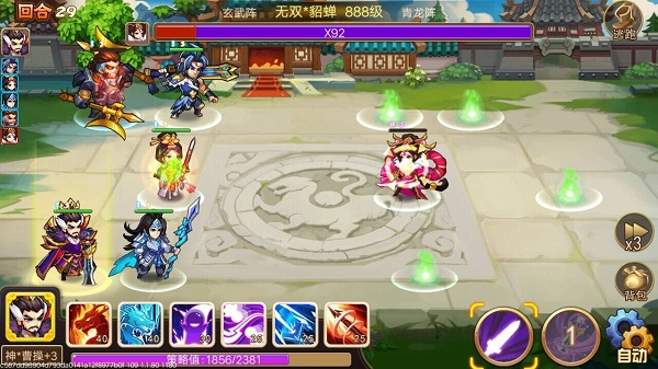 采用经典回合制战斗,招募名将,打造超强队伍。跟随剧情层层延展,将会为你打开特色城池“建安城”。兵阵塔解谜爬塔、泰皇大殿挑战二十四名将、迷宫阁迷宫寻宝,更多模式等你挑战,胜利属于智者!