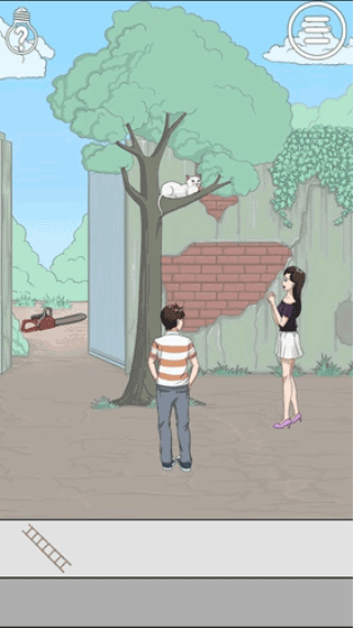 第8关:点梯子,点梯子后边的门,得到电锯,锯断树。