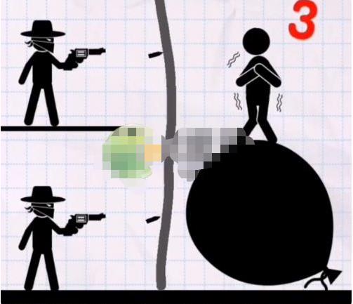 10、第30关(救救他):这关同23关,在子弹发射前,快速地画下长条的竖杠挡住两枚子弹。