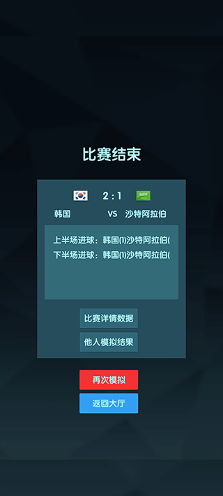 操作简单,玩家只需几步就能完成模拟比赛:点击开始,填写信息,选择球队和时间,最后点击模拟即可。对于喜欢足球的玩家来说,这款游戏是个不错的娱乐选择,可以随时随地用心仪球队挑战全球对手。虽然游戏数据是随机生成的,但能带来不少乐趣,特别是当你支持的队伍获胜时,那种心情简直超赞!