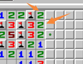 橙色箭头所指的2,周围已有1个雷通过其他方式判出,因此真实数字为1