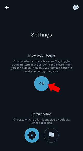 4、然后将按钮打开为ON状态即可使用旗帜标记地雷