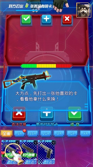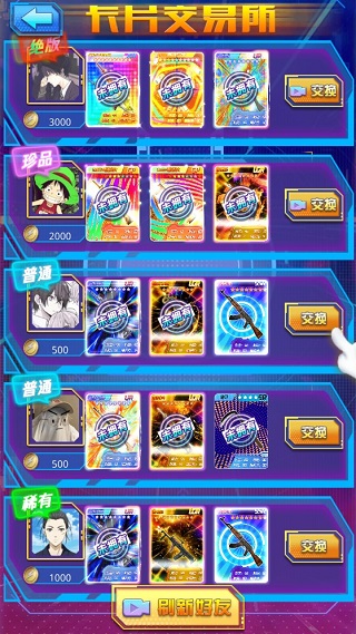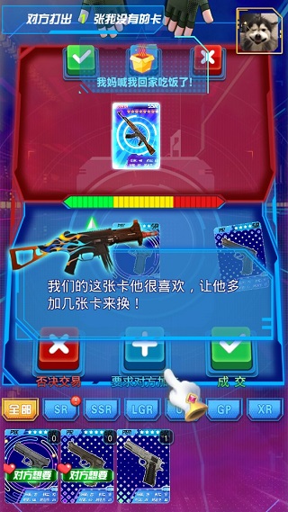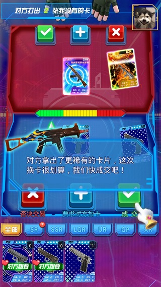 游戏界面设计得很炫酷,玩法也很简单,适合各个年龄段的玩家。你可以通过抽卡获得各种武器卡片,然后利用自己的判断力和策略,在公平或超值的交易中换取心仪已久的稀有卡牌。这种换卡的过程既考验耐心又需要智慧,玩起来停不下来!