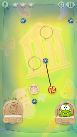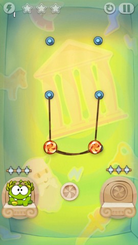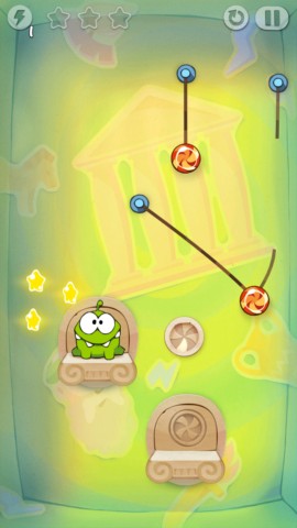 《割绳子》游戏相信不少玩家都体验过吧,这款游戏曾风靡一时,也因此其衍生出不少作品。今天小编在这里为大家带来的是该系列游戏的续集《割绳子玩穿越》,该游戏的画面非常卡通,操作很简单,只要用手指划过绳子就能把它隔断,在绳子上的糖果就会自然落下。而玩家的目标就是要想尽方法把糖果送进小怪物的嘴里,在很多场景里面,还需要运用特殊的手法和道具才能完成这个任务哦,并且要得到更多星星才能激活“时空之门”,只有通过所有关卡的考验,才能穿越到另一个时代。可以说这款风格轻松惬意的手游在闲暇时关打发时间是非常不错的选择。