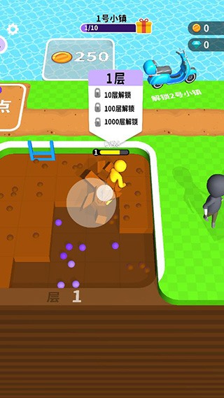 2、滑动屏幕小人就会自动挖土;